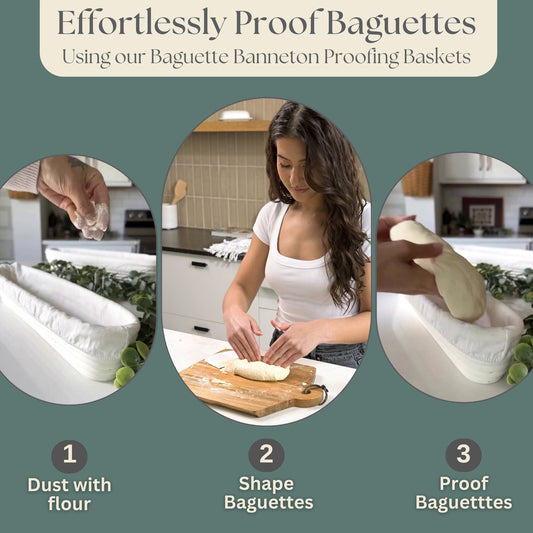 Baguette Proofing Basket- Handcrafted 15 Inch Banneton for Sourdough & French Bread- Set of 2- Natural Rattan Bread Rising Bowls with Liner- Includes Recipe eBook